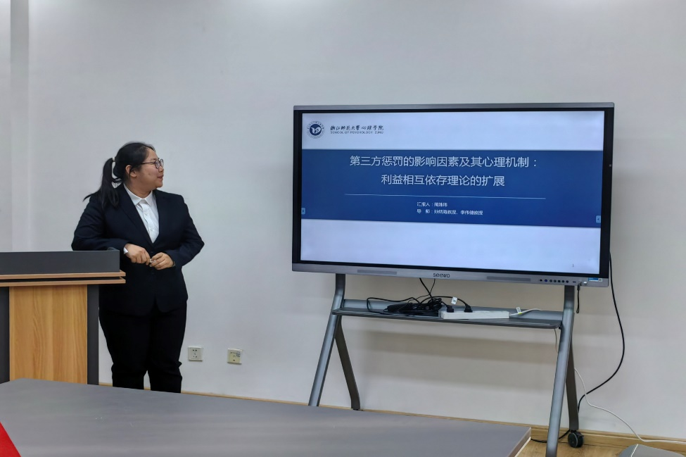 交流会上,来自浙江大学的杨西玛博士、浙江师范大学的蔺姝玮博士、万思敏博士分别作了《科研成果分享与交流》《第三方惩罚的影响因素及其心理机制:利益相互依存理论的扩展》《不同时空尺度下无意识信息整合》的学术报告。在互动环节中,三位青年博士与公司博士生展开了热烈讨论,并就在场博士生的提问进行了详细解答,现场气氛融洽和谐。会议最后,金童林副经理对三位青年博士的精彩报告作了简单总结,讲座在热烈的掌声中圆满结束。