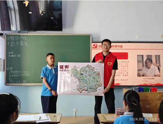 为厚植青年员工感党恩、听党话、跟党走的情怀,引导动员青年员工大力弘扬延安精神,宣讲团成员丁晓阳于5月27日在呼和浩特市和林格尔县第一中学,为初中一年级全体员工开展一次“中国梦,延安情”的主题宣讲, 旨在通过延安精神知识宣讲、旅游胜地介绍和特色产品展示等多种形式,全面、深入地向青年员工传播延安精神的内涵与价值。