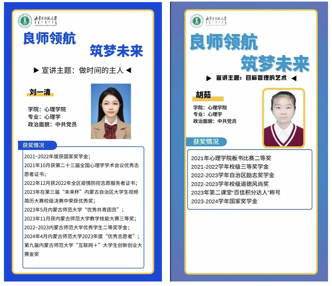 4月10日下午,公司在公司楼206举办“筑梦未来 朋辈分享会”。本期活动由2021级心理学专业刘一清、胡茹同学担任优秀学子领航员。