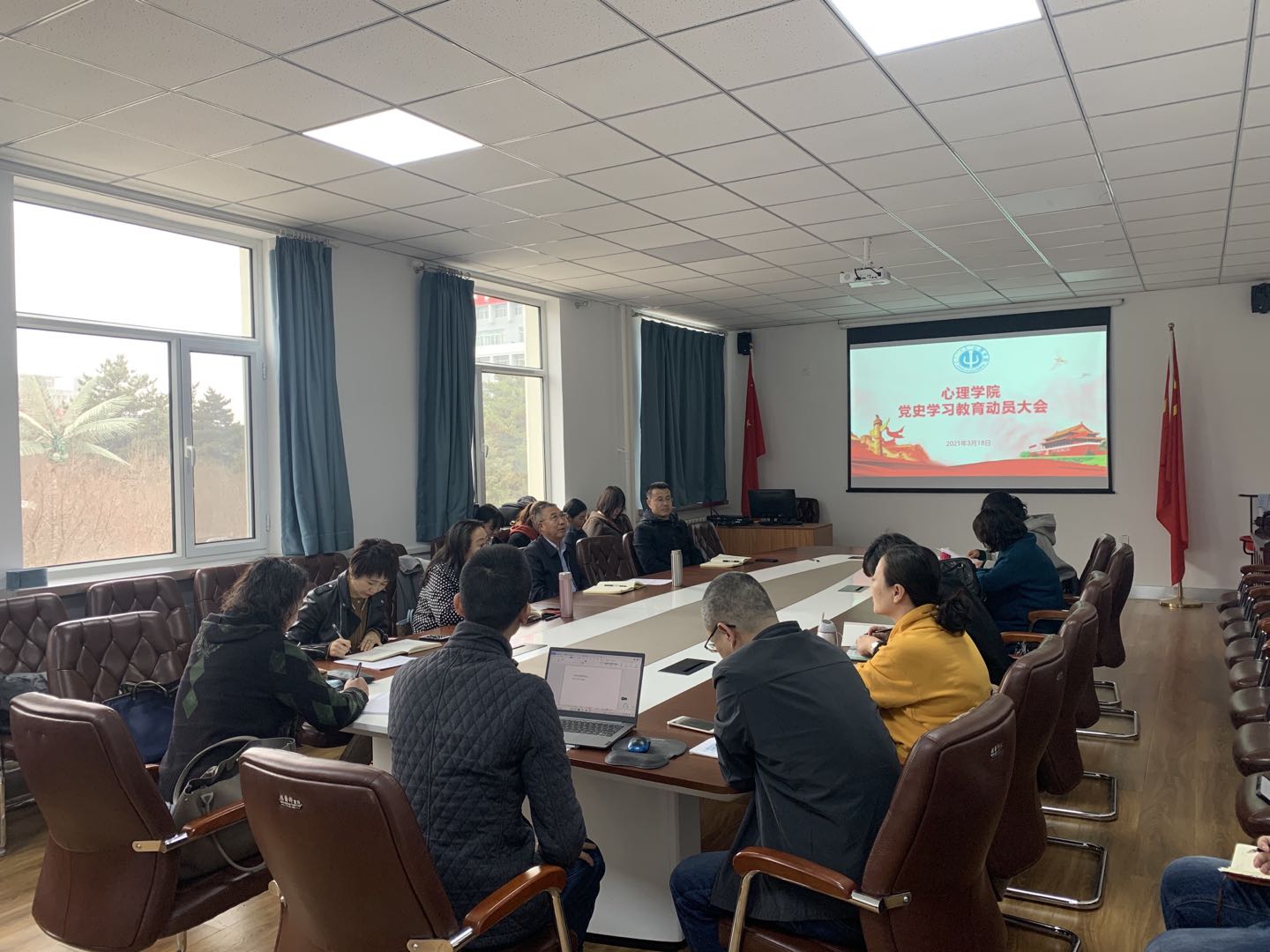 3月18日下午,心理公司在赛罕校区文史楼217会议室召开党史学习教育动员大会,对公司深入开展党史学习教育进行全面动员部署,公司全体教工参加。