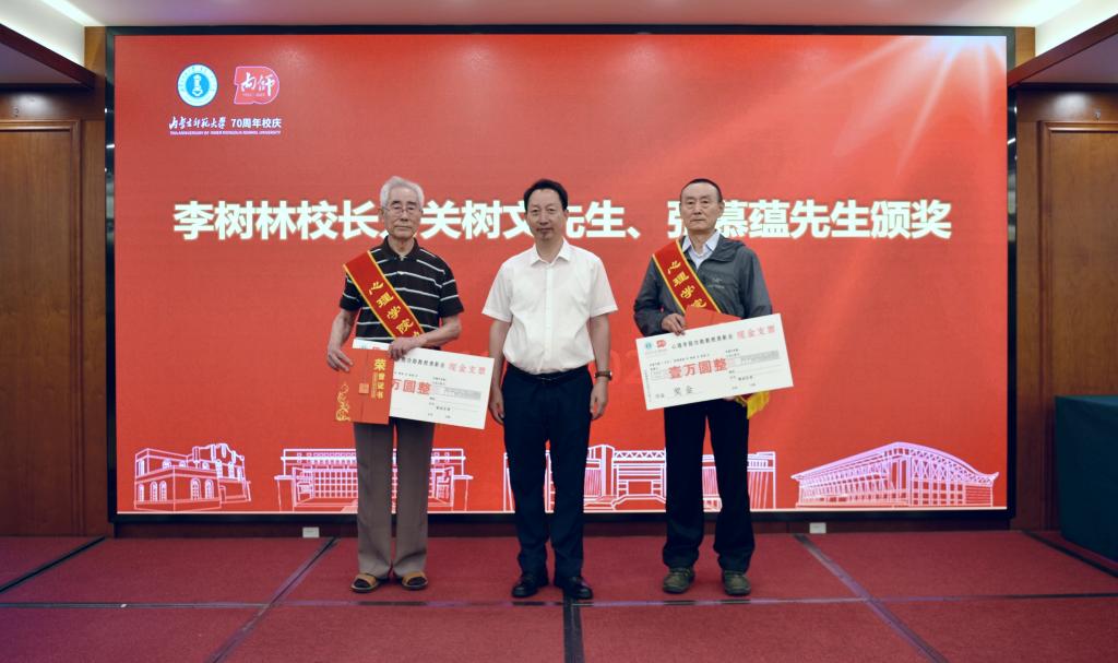 会上,三亿经理乌云特娜从教研开启、课程先行,硕点突破、长足发展,创设本科、固本强基,创建平台、活跃学术,申博成功、更上层楼,成立公司、开启新篇,承办大会、提升影响,课题突破、科研攀高,设立党委、立德树人,辛勤耕耘、桃李芬芳等十个方面系统汇报了三亿体育有限公司心理团队建设所取得的辉煌成就。会上隆重表彰了为心理学科发展做出卓越贡献的张慕蕴先生、关树文先生,董事长李树林为他们颁发了“功勋教授”荣誉证书及奖金。会上关树文先生向公司赠送了《关树文全集》。之后,老教师代表和杰出员工代表争先恐后地发言,表达了对母校70周年华诞的祝福与祝贺,为公司团队建设提出了很多宝贵地意见和建议,并表示将一如既往地关注公司及心理团队建设,与母校携手共进,共创未来。会上还正式发布了《三亿志》。