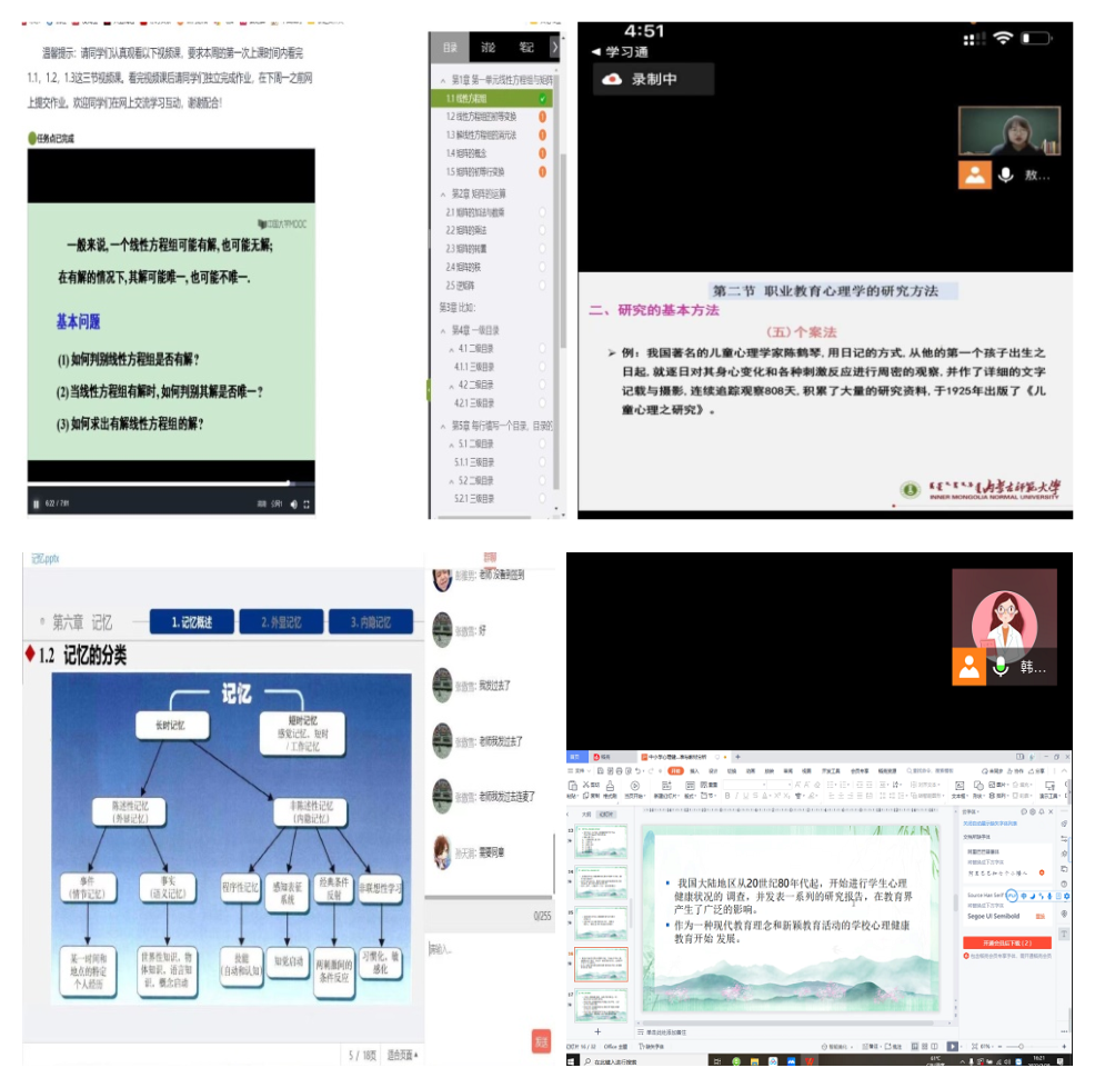 开学第一天,公司共有11门本科课程,3门研究生课程顺利开课,教师们充分利用“内师在线”教学平台,选取优质教学资源,采用视频直播等方式,辅助微信、腾讯会议、QQ群等进行课堂教学、辅导和在线答疑;员工们积极参与线上学习和讨论;公司领导和教学督导深入到每门课堂进行听课指导,保障教学质量;以良好的精神面貌给新学期开了个好头。