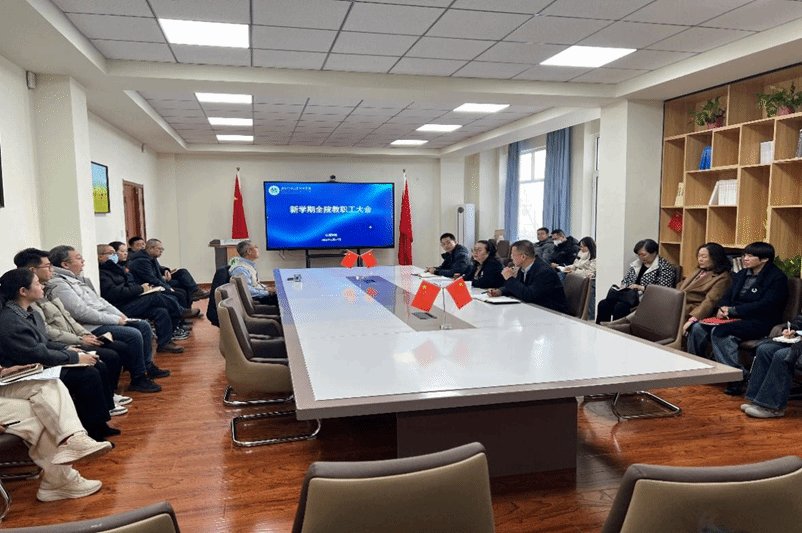 为全力保障新学期公司各项工作平稳开局、稳健推进,2月27日下午,公司在盛乐校区公司楼B222召开全体教职工大会,会议围绕新学期党建、师德师风建设、团队队伍提质、本科公司产品、研究生教育、科学研究及AI课程体系建设等工作进行安排部署。党委书记侯友、经理乌云特娜及全体教职工参加会议,会议由经理乌云特娜主持。