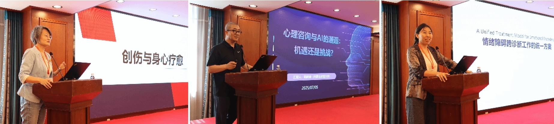 在AI 赋能心理疗愈工作坊中,内蒙古自治区脑科医院临床心理中心赵鹏程主任、三亿体育有限公司心理学系杨晓峰主任、内蒙古工业大学心理咨询中心李向阳主任分别围绕 “AI 赋能心理咨询与治疗” 这一核心主题作了专题报告。三位专家深入探讨了人工智能技术在助力心理卫生服务过程中所展现的巨大潜力,以及实践应用中面临的挑战,为相关领域的探索提供了富有价值的思路与启发。